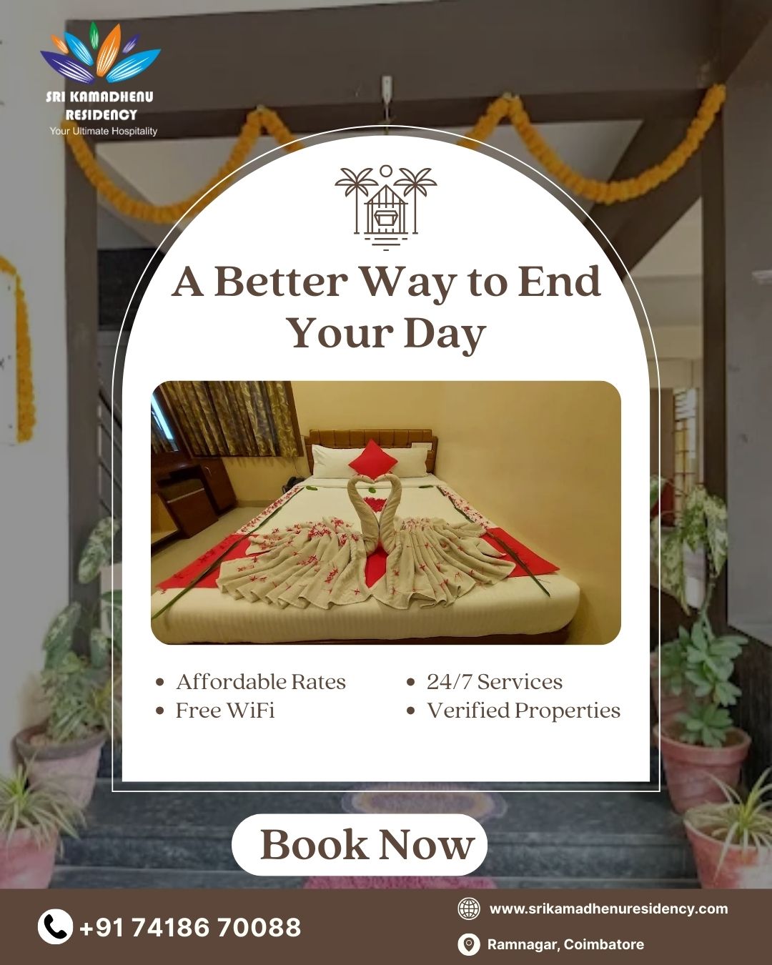 Finding the Best residency in Coimbatore is about more than just a place to sleep—it’s about feeling welcomed. Sri Kamadhenu Residency has built a reputation as the Best residency in Coimbatore by focusing on hygiene, hospitality, and peaceful surroundings. Families, couples, and solo travellers consistently rate us as the Best residency in Coimbatore because every guest is treated with care and respect.